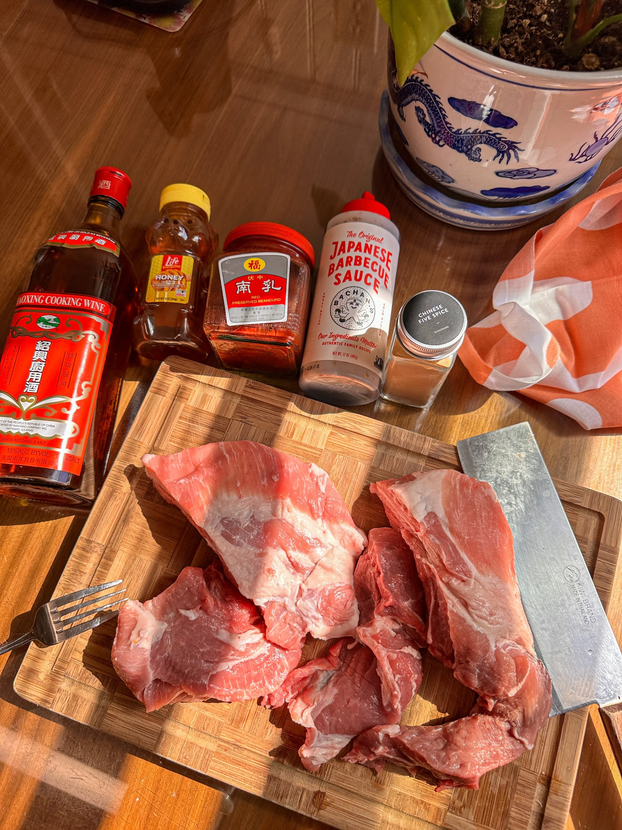 4 tbsp honey + 1-3 tbsp for basting (depends how sweet you like your pork)